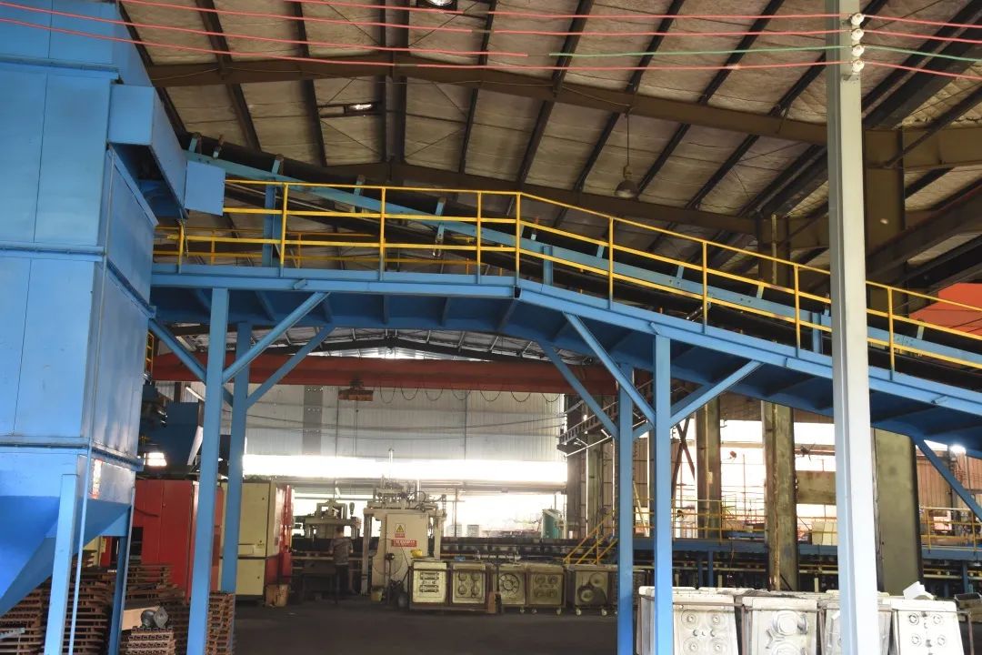 2022年,粘土砂鑄造投放使用了一條自動(dòng)化生產(chǎn)線,有效的提高了工作效率。其粘土砂鑄造和消失模鑄造主要是生產(chǎn)中小件、中高檔鑄件。用于朝陽(yáng)集團(tuán)企業(yè)下的水泵和電機(jī)的配件,以及重機(jī)制砂配件。10噸爐V法鑄造和消失模鑄造主要生產(chǎn)平衡重塊,為合作伙伴提供優(yōu)質(zhì)配重塊。