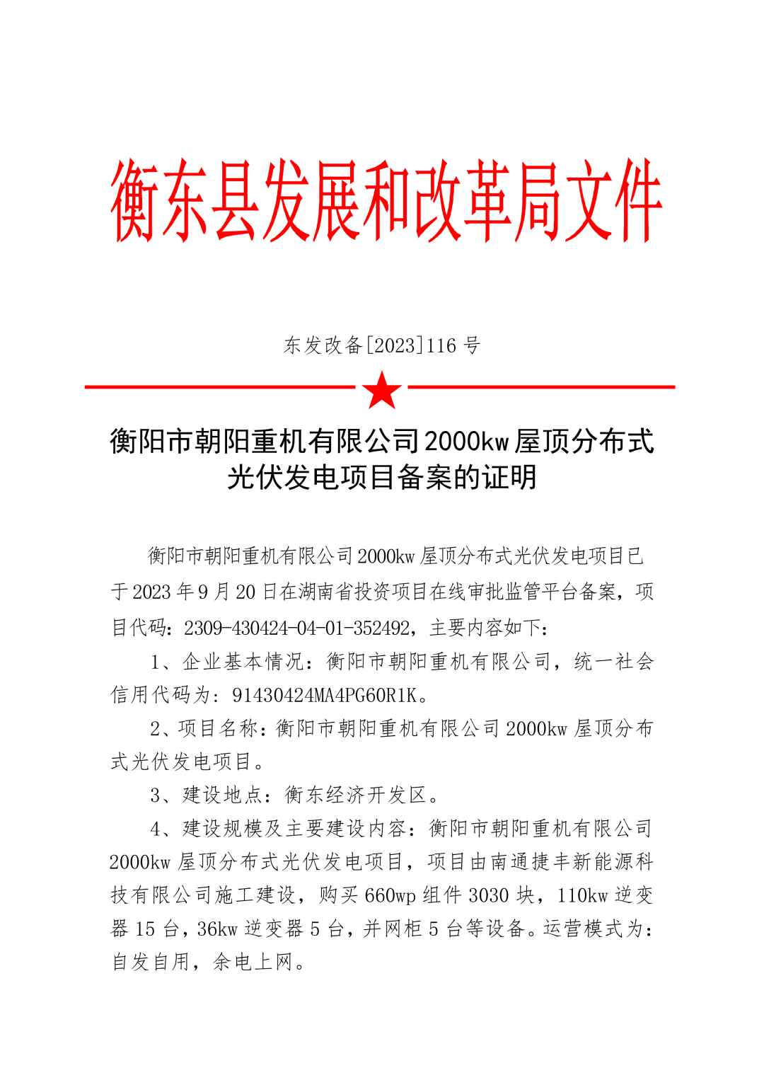 朝陽集團是一家具有社會責任感的企業(yè),積極響應(yīng)國家綠色雙碳發(fā)展的號召,一直在綠色產(chǎn)品和綠色能源上不斷探索和創(chuàng)新,致力于推動環(huán)保產(chǎn)業(yè)的發(fā)展。公司從源頭的設(shè)計開發(fā)上就著重綠色環(huán)保、節(jié)能減排。2023年8月集團的電機產(chǎn)品就獲得了“國家綠色設(shè)計產(chǎn)品”和“湖南省綠色設(shè)計產(chǎn)品”榮譽。公司這次投入巨資建設(shè)光伏項目,又在節(jié)能、綠色能源上走在了區(qū)域前面。