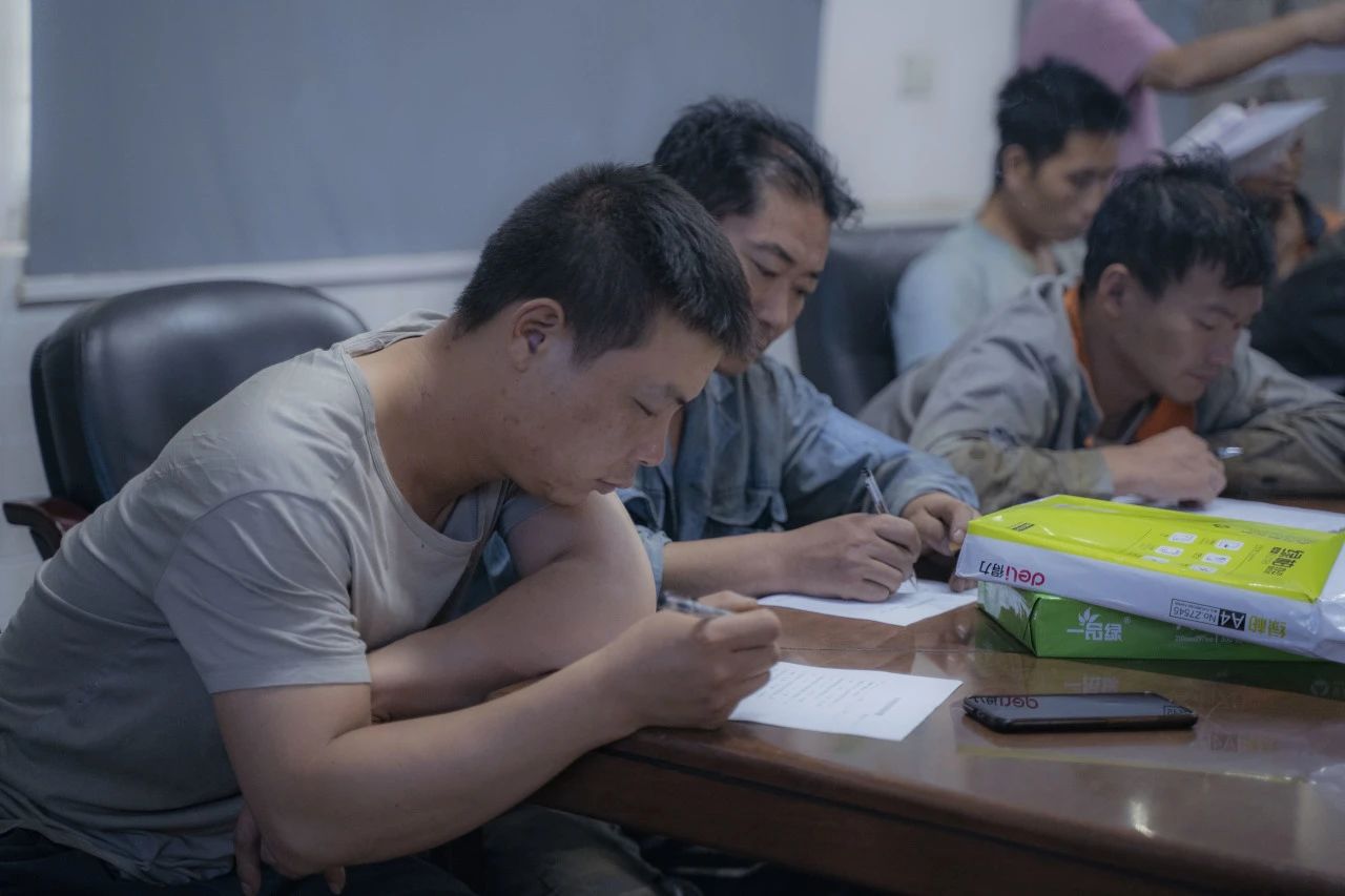 在對(duì)行車、有限作業(yè)空間安全操作標(biāo)準(zhǔn)進(jìn)行細(xì)致學(xué)習(xí)后,全體參會(huì)人員一同觀看安全教育視頻,了解車間作業(yè)中發(fā)生的真實(shí)事故,以及事故帶來的人員財(cái)產(chǎn)傷害。安全生產(chǎn)教育培訓(xùn)的環(huán)節(jié),車間工人進(jìn)行行車安全知識(shí)培訓(xùn)考試。安環(huán)委主任表示,他希望通過現(xiàn)場(chǎng)筆試這一方式,檢驗(yàn)大家此次培訓(xùn)掌握情況,同時(shí)進(jìn)一步加深鞏固安全知識(shí)。