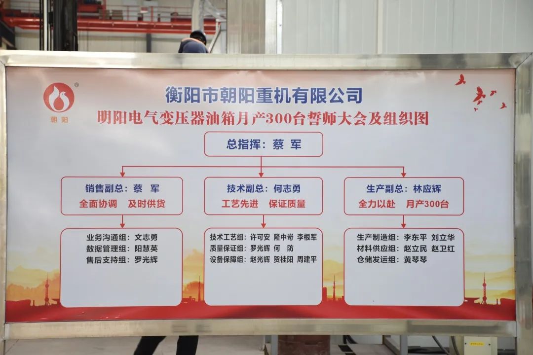 今天的宣誓在我們每個人的心中種下一個火種,將我們?nèi)w朝陽人團(tuán)結(jié)一心、齊心協(xié)力、精益求精,不斷創(chuàng)新,不斷突破,服務(wù)好客戶,提升好自身。以做好明陽電器月供300臺變壓器油箱為起點,攻艱克難,持續(xù)追求卓越,不斷超越自我,做出一個客戶滿意、員工幸福、茁壯成長般“驕陽似火”的朝陽集團(tuán)。